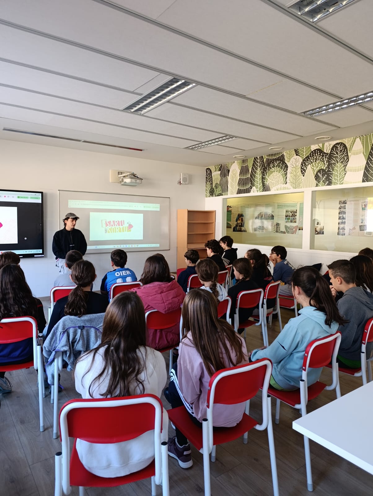 Atzo Satu eta Sortu programaren barruan Danel Galdaera DBH1eko ikasleekin egon zen. Egitasmo honen muima ikasleen eta kultura, zientzia eta kirol munduko euskal hiztun entzutetsuen arteko topaketak egitean datza.